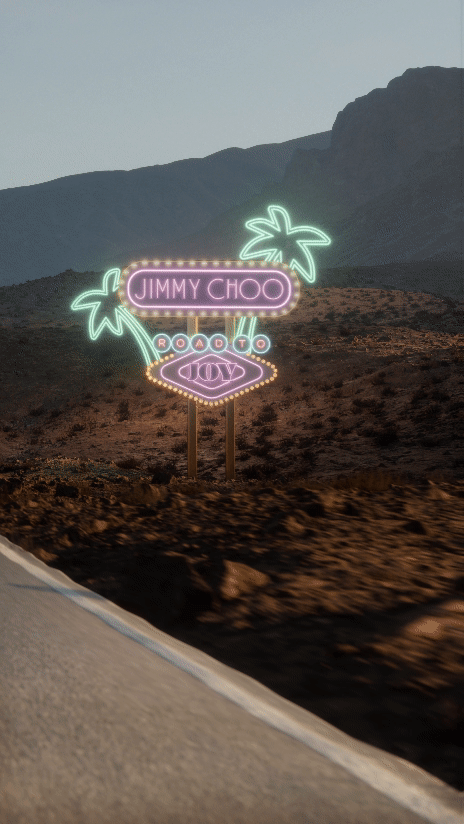 Campaign: How do you build buzz for a summer campaign before its star power hits— and make the teaser feel just as luxe? A bold social teaser series capturing the spirit of Jimmy Choo’s Road to Joy—high fashion, fast cars, and desert chic.
